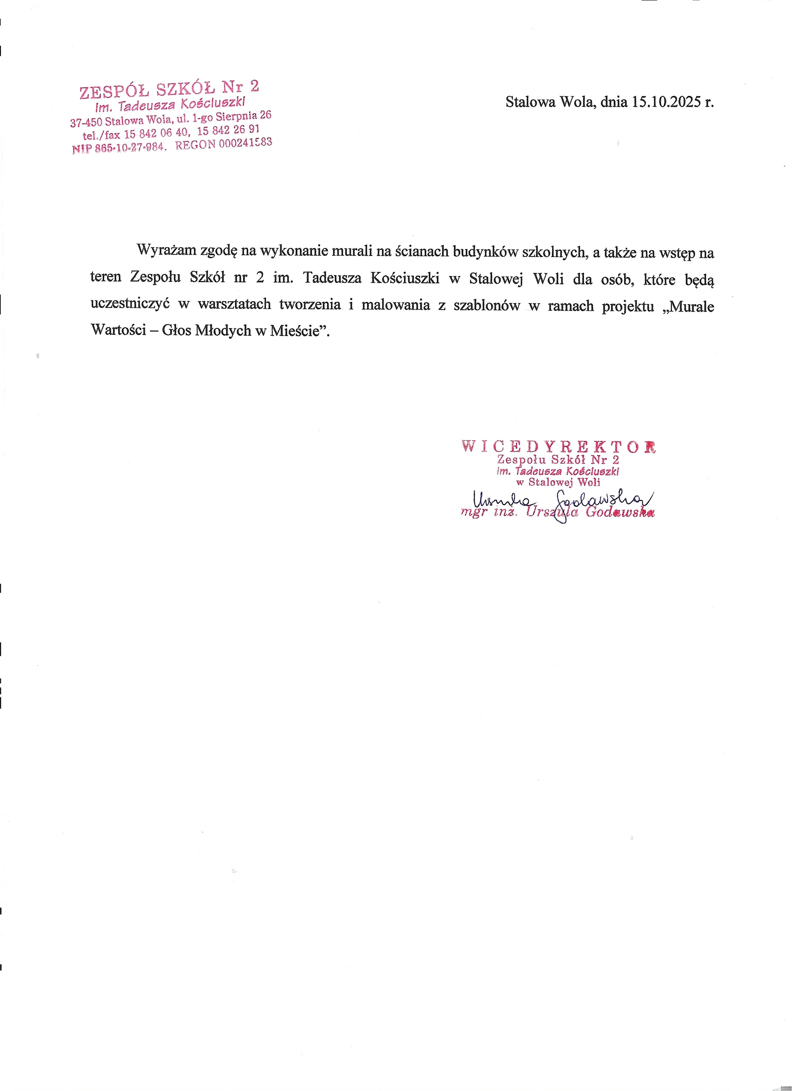 Projekt „Murale Wartości – Głos Młodych w Mieście” łączy kreatywne pisanie i sztukę uliczną, zachęcając młodych mieszkańców Stalowej Woli do aktywnego uczestnictwa w życiu kulturalnym i społecznym miasta. Jego celem jest rozwijanie wrażliwości, wyobraźni i umiejętności wyrażania siebie poprzez słowo, a także włączenie młodzieży w działania twórcze o charakterze społecznym. W ramach projektu odbędą się warsztaty kreatywnego pisania inspirowane metodą Loesje, podczas których uczestnicy stworzą autorskie hasła – krótkie refleksje, spostrzeżenia i komentarze do współczesnej rzeczywistości. Hasła te zostaną opracowane graficznie i wydrukowane w formie plakatów, które zostaną zaprezentowane publicznie, np. na słupach ogłoszeniowych lub miejskich instytucjach kultury. Kolejnym działaniem będzie wykonanie dwóch murali w przestrzeni miejskiej: społecznego „Młodzi Samorządni” oraz patriotycznego, nawiązującego do historii i tradycji lokalnej, np. przedstawiającego patrona szkoły. Murale staną się trwałym efektem projektu, upiększającym przestrzeń publiczną i promującym zaangażowanie młodzieży. Działania w ramach projektu obejmują: Rekrutację i informowanie uczestników: kryteriami będą złożenie w terminie prawidłowo wypełnionych dokumentów rekrutacyjnych, zamieszkanie lub nauka na terenie Stalowej Woli, wiek 14–29 lat oraz kolejność zgłoszeń w przypadku wielu chętnych. Informacje o naborze zostaną ogłoszone na stronie internetowej Urzędu Miasta, w szkołach, mediach społecznościowych i w formie plakatów. Rekrutacja rozpocznie się w wyznaczonym terminie, a szkolenie z kreatywnego pisania planuje się przeprowadzić w Zespole Szkół Nr 2 im. T. Kościuszki w Stalowej Woli. Beneficjentami projektu będą uczniowie szkół ponadpodstawowych i studenci w wieku 14–29 lat, a pośrednio również mieszkańcy miasta, którzy zyskają dostęp do efektów projektu – plakatów i murali w przestrzeni publicznej. Projekt ma charakter otwarty, inspirujący i integracyjny – stawia na młodych ludzi, ich głos i ich wizję miasta pełnego wartości i koloru.